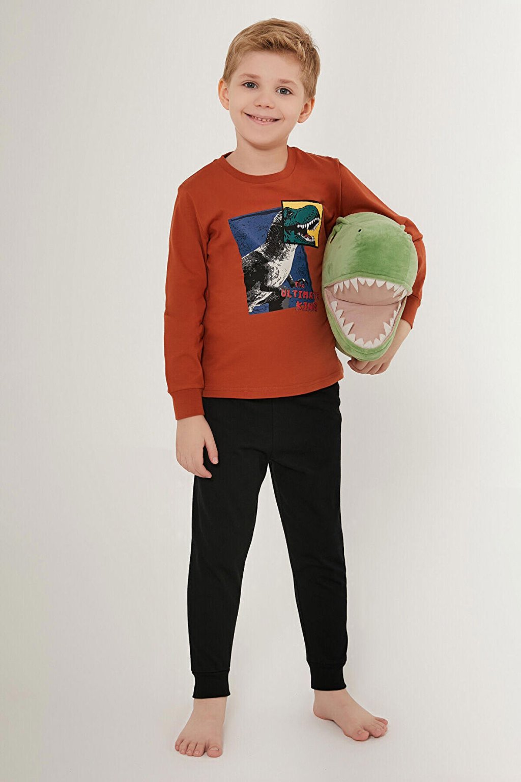 Detské pyžamo ROLYPOLY RP3191 je ideálnou voľbou pre chlapcov, ktorí milujú pohodlie a kvalitné spracovanie. Vyrobené zo 100 % bavlny, ponúka maximálny komfort počas spánku aj oddychu. Pyžamko má dlhý rukáv v tehlovo-oranžovej farbe s veselou potlačou na hrudi a čierne nohavice. Vďaka kvalitnému materiálu je príjemné na pokožke a vhodné aj pre citlivú detskú pokožku.