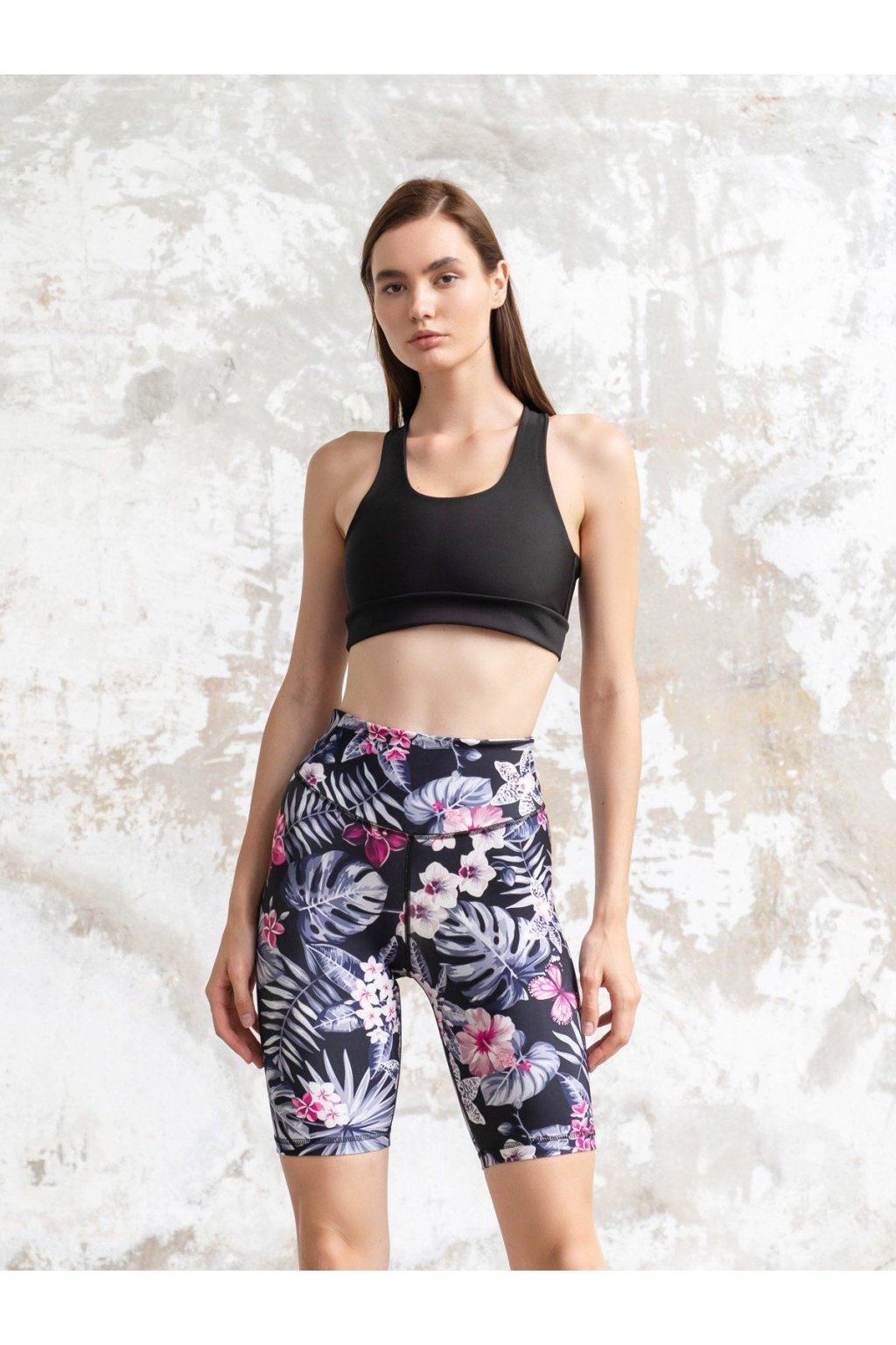 Dámske biker legíny s kvetinovým vzorom a zvýšeným pásom