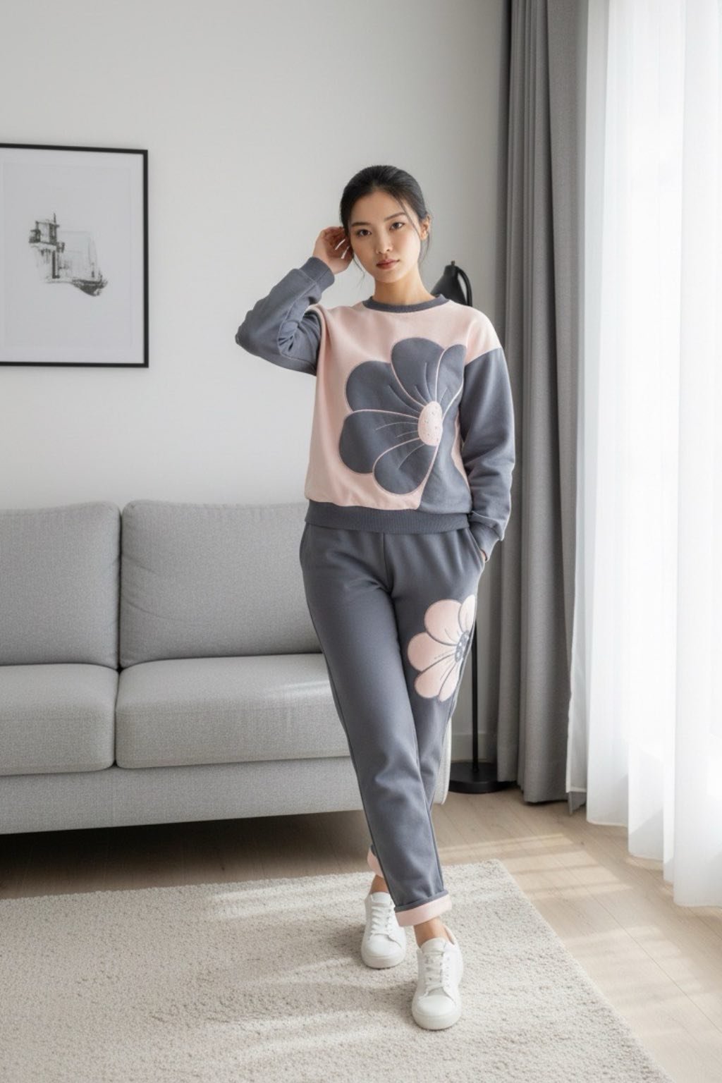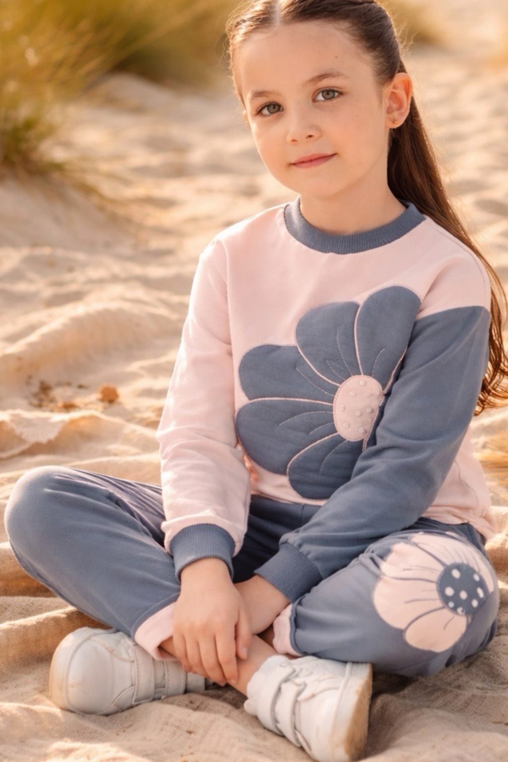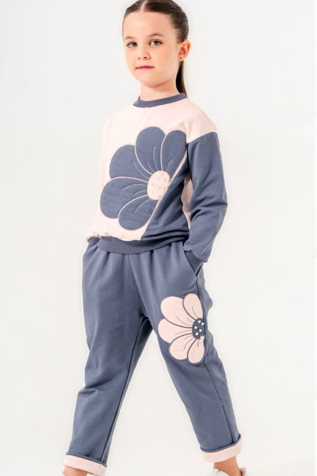Dievčenský komplet moonstar 5007 sivý kvet