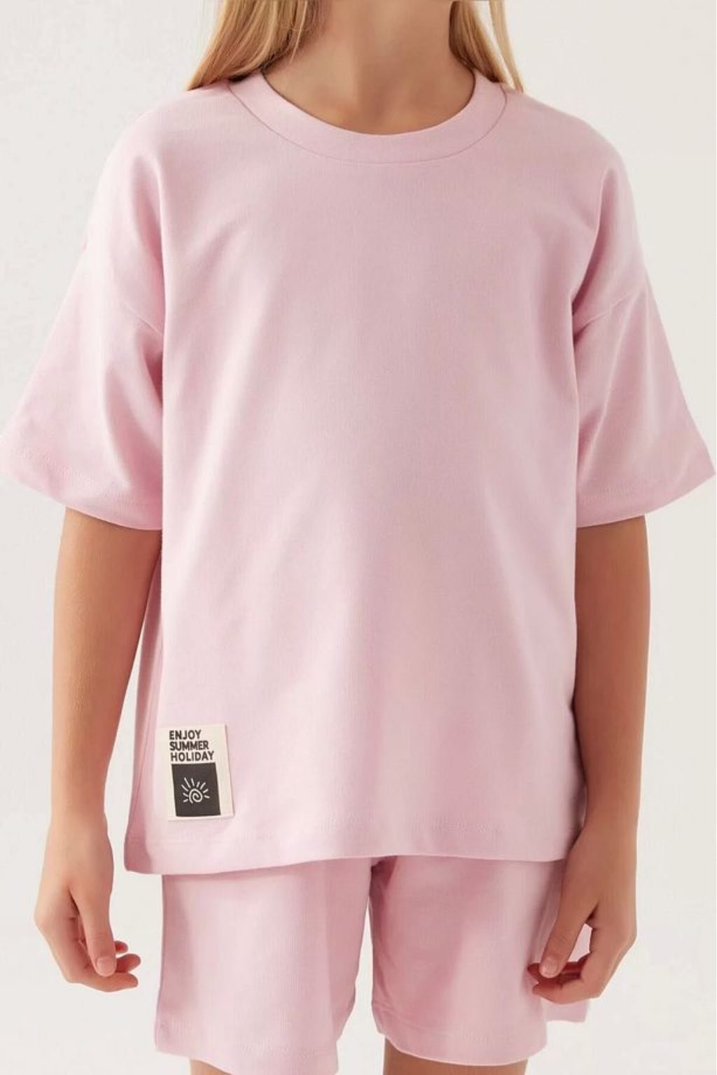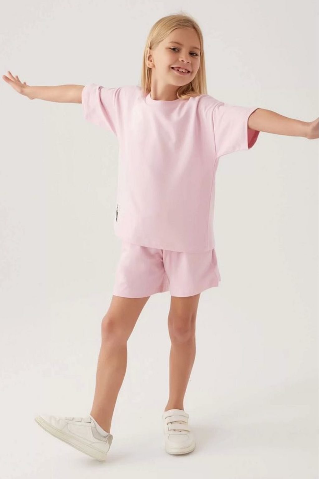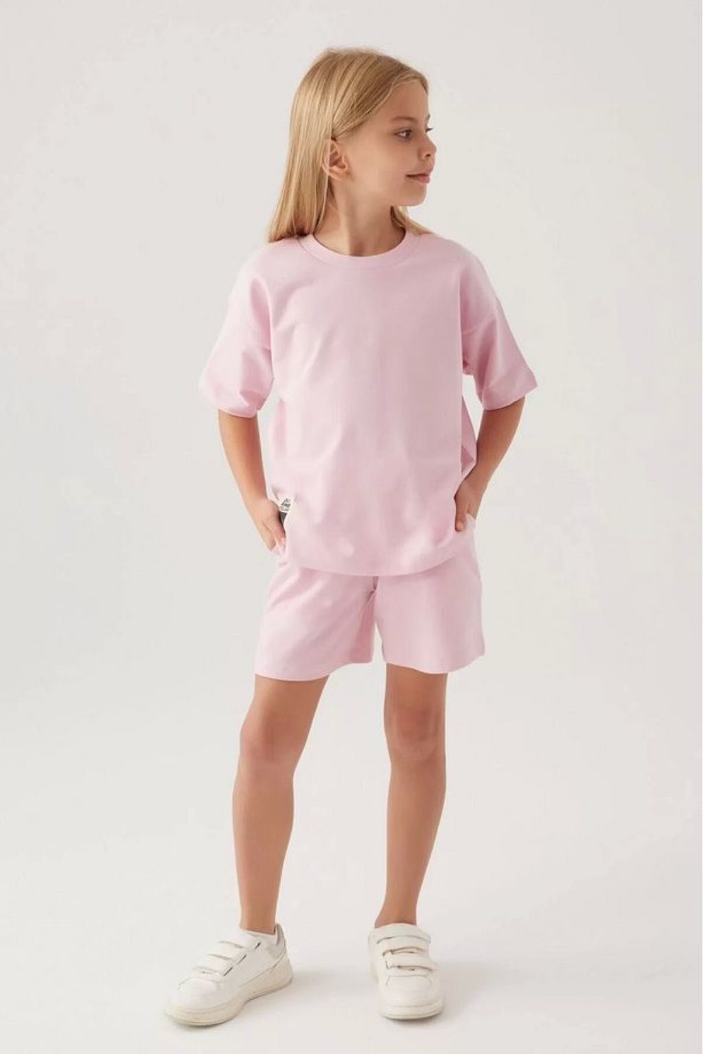 Dievčenské letné pyžamo Basic Pink – jednofarebný ružový komplet trička a kraťasov