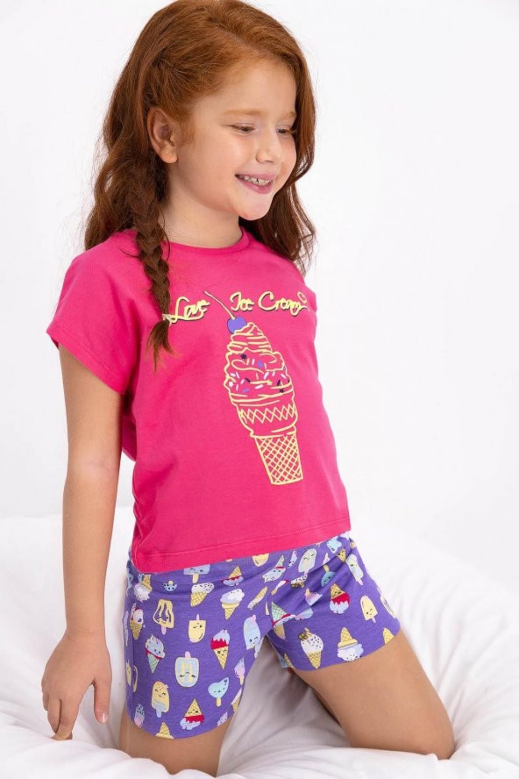 Dievčenské letné pyžamo Sweet Drink – ružové tričko a fialové kraťasy