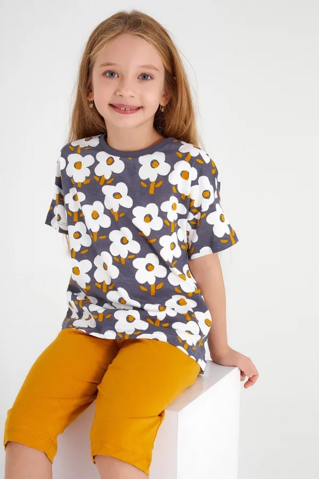 Dievčenský letný set – kvetinové tričko a horčicové kraťasy