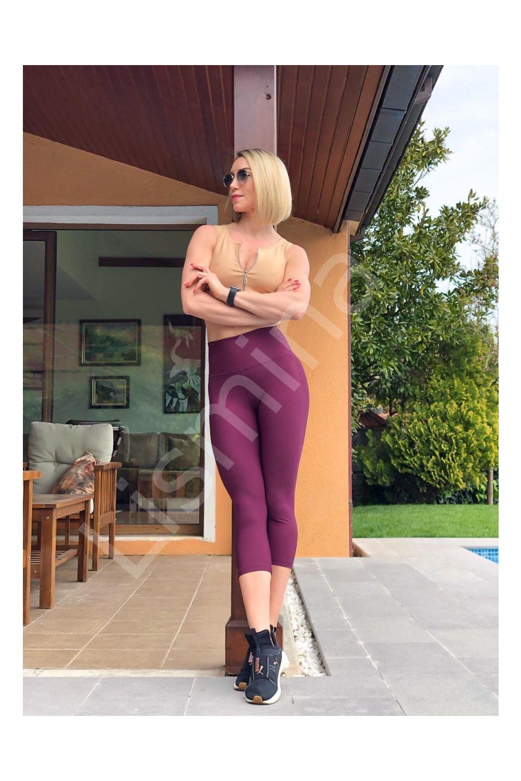 Štýlové dámske športové legíny LISMINA vo vínovej farbe s vysokým pásom. Ideálne na cvičenie, beh alebo každodenné nosenie. Príjemný elastický materiál sa prispôsobí postave a poskytuje maximálne pohodlie.