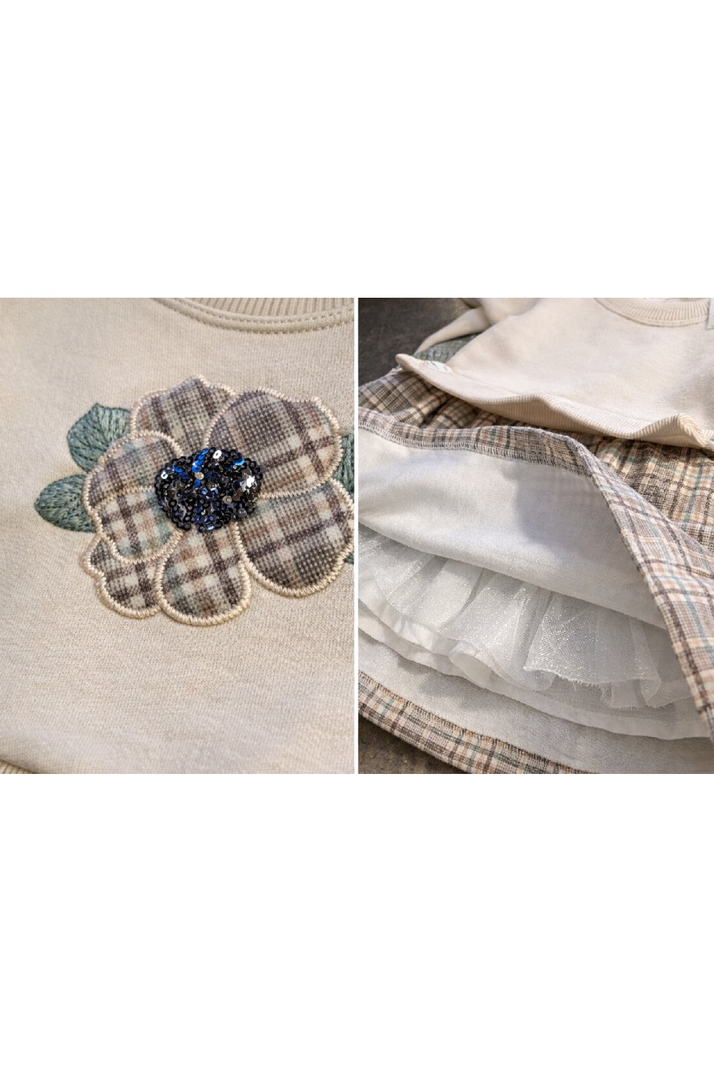 Horná časť je vyrobená ako pohodlná detská mikina, ktorá je príjemná na nosenie a poskytuje dostatok komfortu počas celého dňa. Spodná časť tvorí ľahká dievčenská sukňa, ktorá dodáva outfitu hravý a elegantný vzhľad.