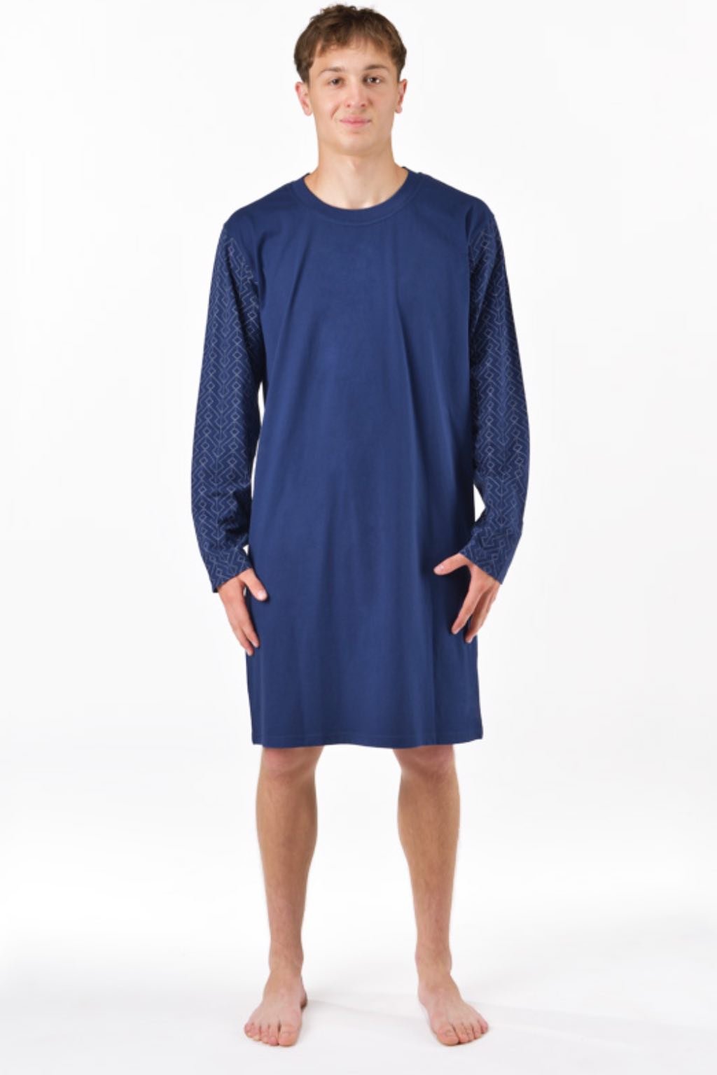 Pánska nočná košeľa pánska s dlhým rukávom 79203 modrá
