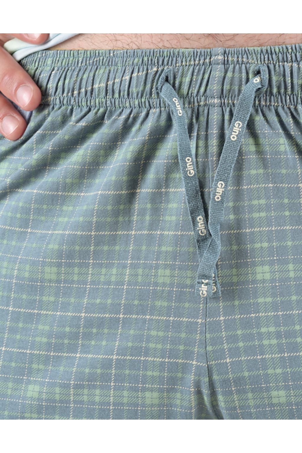 Pohodlie a štýl počas letných nocí – to je pánske pyžamo GINA Sail Away. Tričko s krátkym rukávom v pastelovo mentolovej farbe s decentnou námorníckou potlačou pôsobí moderne a sviežo. Krátke kárované šortky dopĺňajú celkový vzhľad a poskytujú maximálnu voľnosť pohybu.