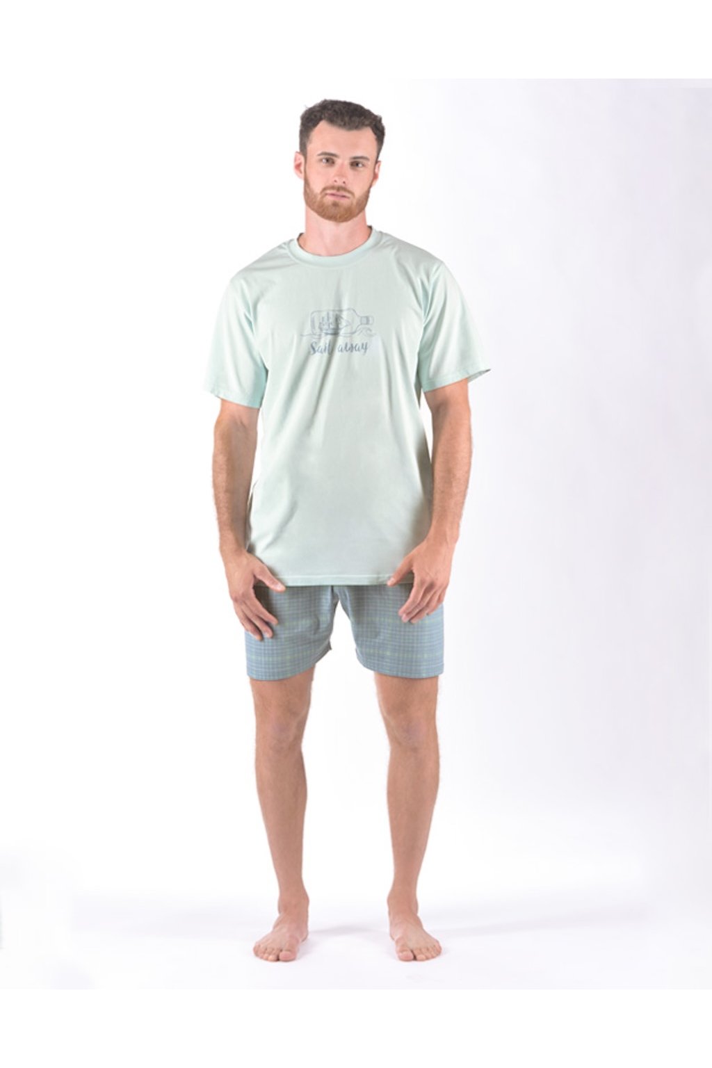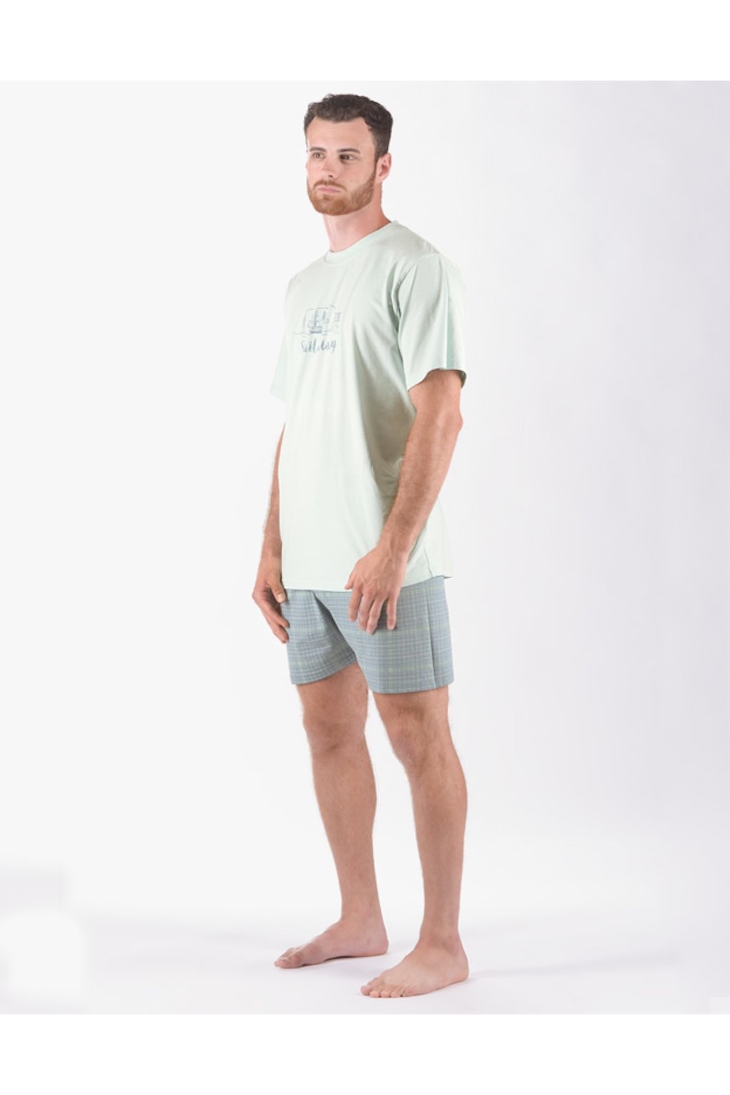 Pánske pyžamo GINA Sail Away – krátke, mintová farba