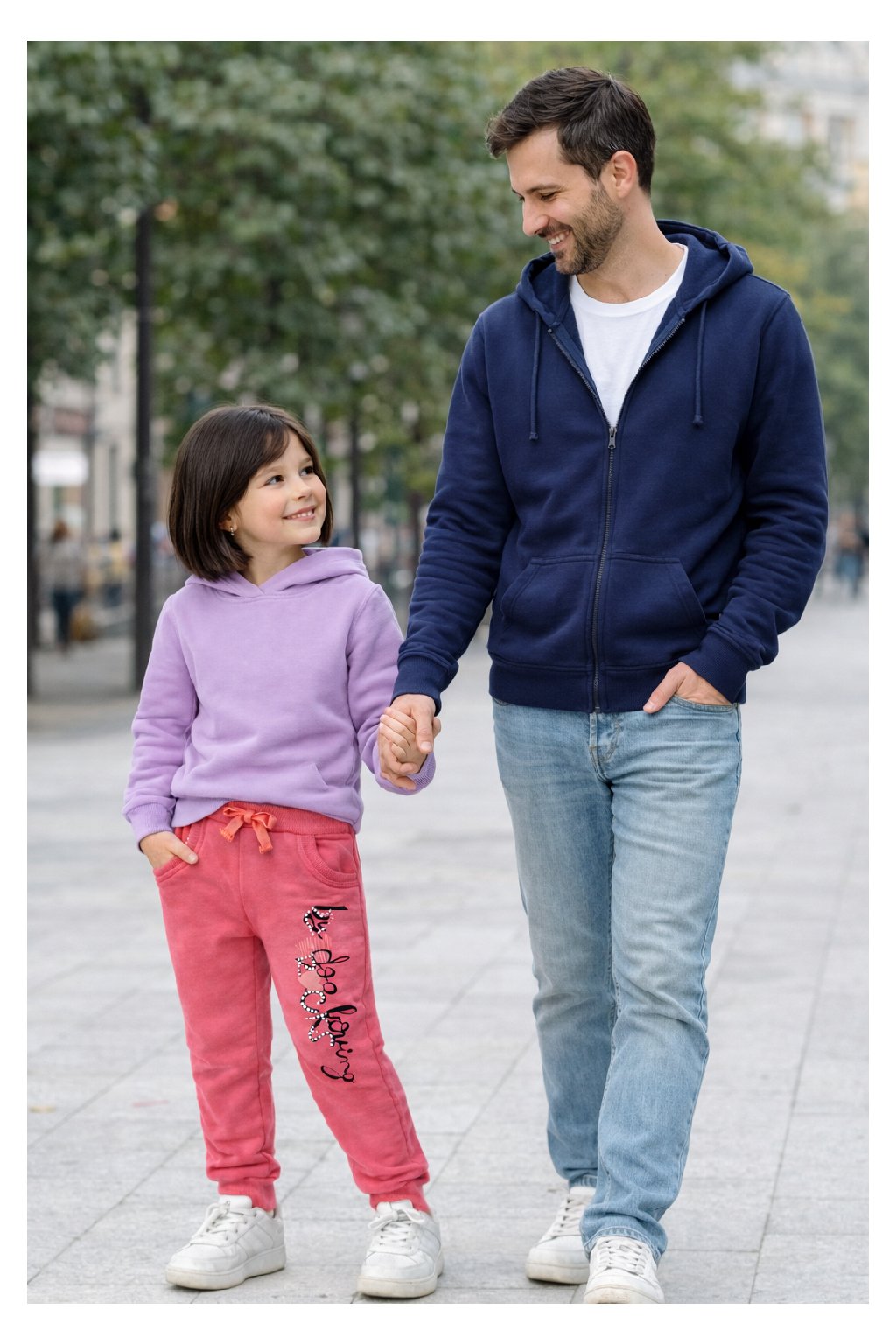 Pohodlné detské tepláky s praktickými vreckami sú ideálne na každodenné nosenie aj voľný čas. Majú elastický pás z patentu so šnúrkou na jednoduché prispôsobenie veľkosti. Spodná časť nohavíc je zakončená zašitou gumou, vďaka čomu tepláky dobre držia tvar a pohodlne sedia. Mäkký a príjemný materiál zabezpečuje komfort počas celého dňa.